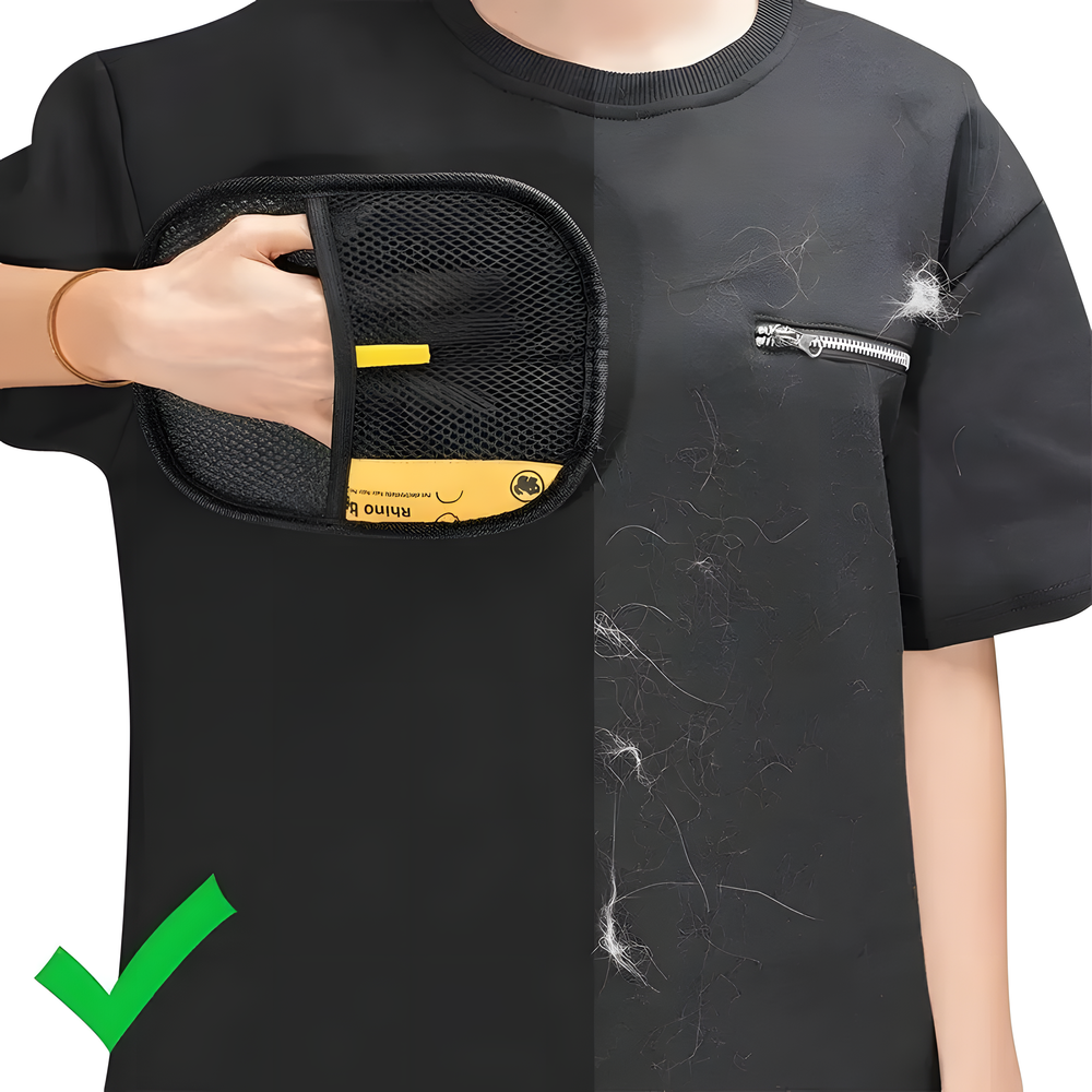 Effortlessly clear away pet hair from your furry friends and home with this double-sided electrostatic glove. It’s the reusable, mess-free solution for fur-free furniture and clothes in seconds.